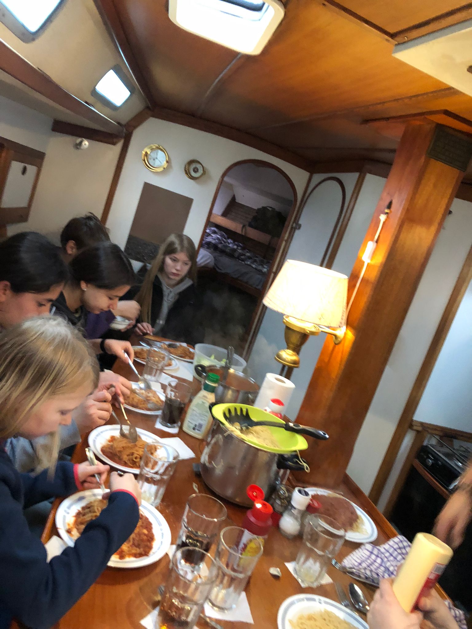 Die ersten zwei Tage verlangten wirklich Tapferkeit, weil die Dieselheizung immer wieder versagte und morgens Eis auf dem Deck vorgefunden wurde. Der Fehler konnte behoben werden und dann wurde es auch gemütlich auf der DIALOG.