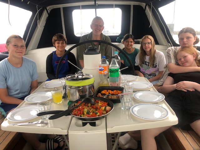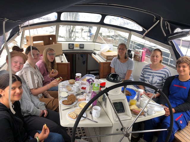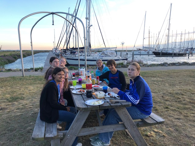 Windstärken bis 8 BFT in Böen zwangen die Mädchen und Jungen der Kinderhäuser Steinhagen zu Hafentagen statt zu ausgiebigen Segeltörns. Trotzdem kam der Spaß nicht zu kurz. Am Freitagabend nach der Ankunft erlaubte der Wind noch das Grillen am Steg. In der Nacht frischte er dann weiter auf, so dass an eine Ausfahrt am Samstag nicht zu Denken gewesen ist. Stattdessen gab es eine stürmische Wanderung am Deich von Stavoren. Appelgebak und Patats versüßten den Spaziergang beim Erkunden des Ortes.
